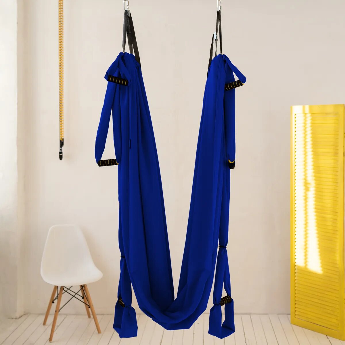 Ляг в гамак для йоги, закрой глаза и дыши глубоко.