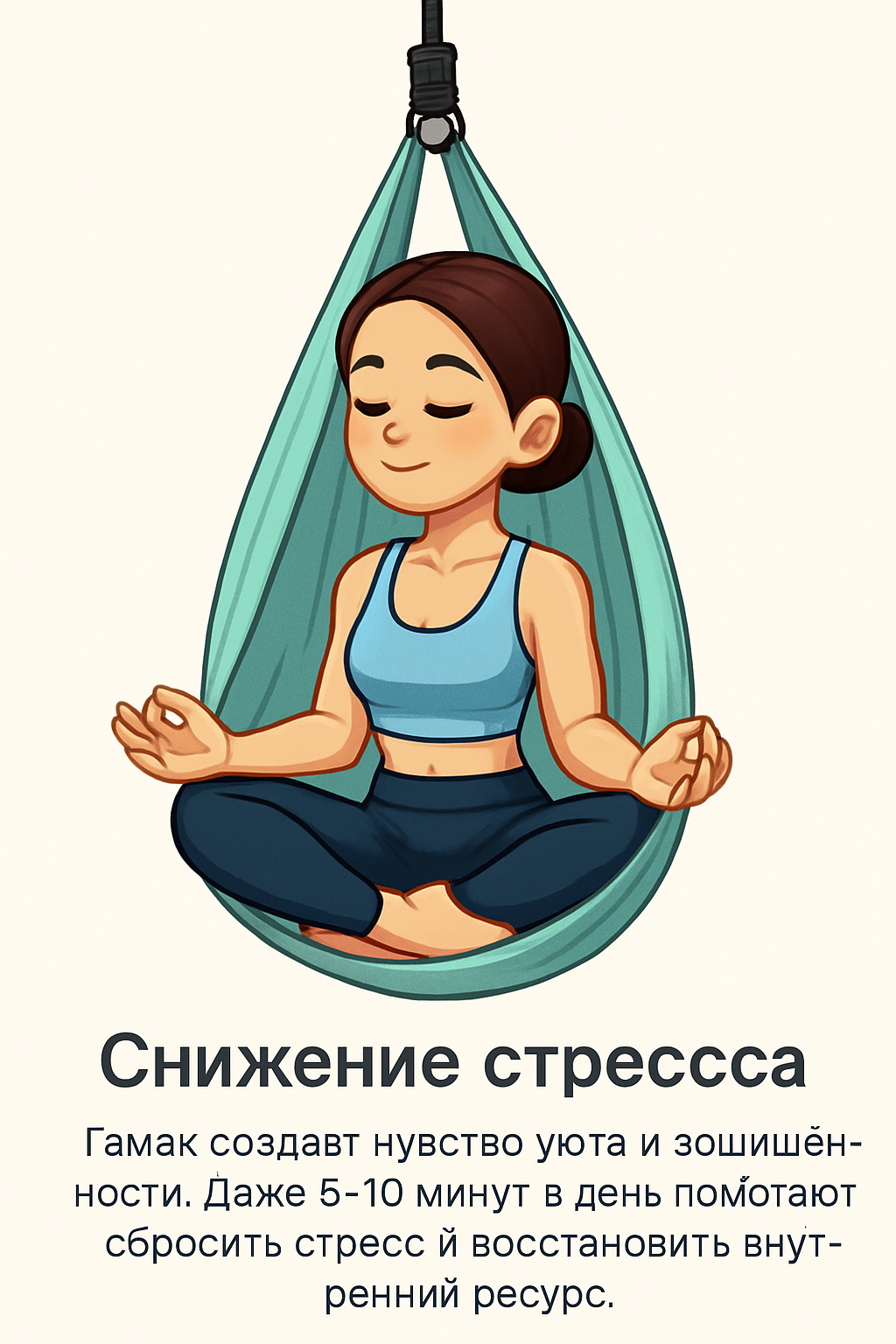 Гамак создаёт чувство уюта и защищённости. Даже 5–10 минут в день помогают сбросить стресс и восстановить внутренний ресурс.