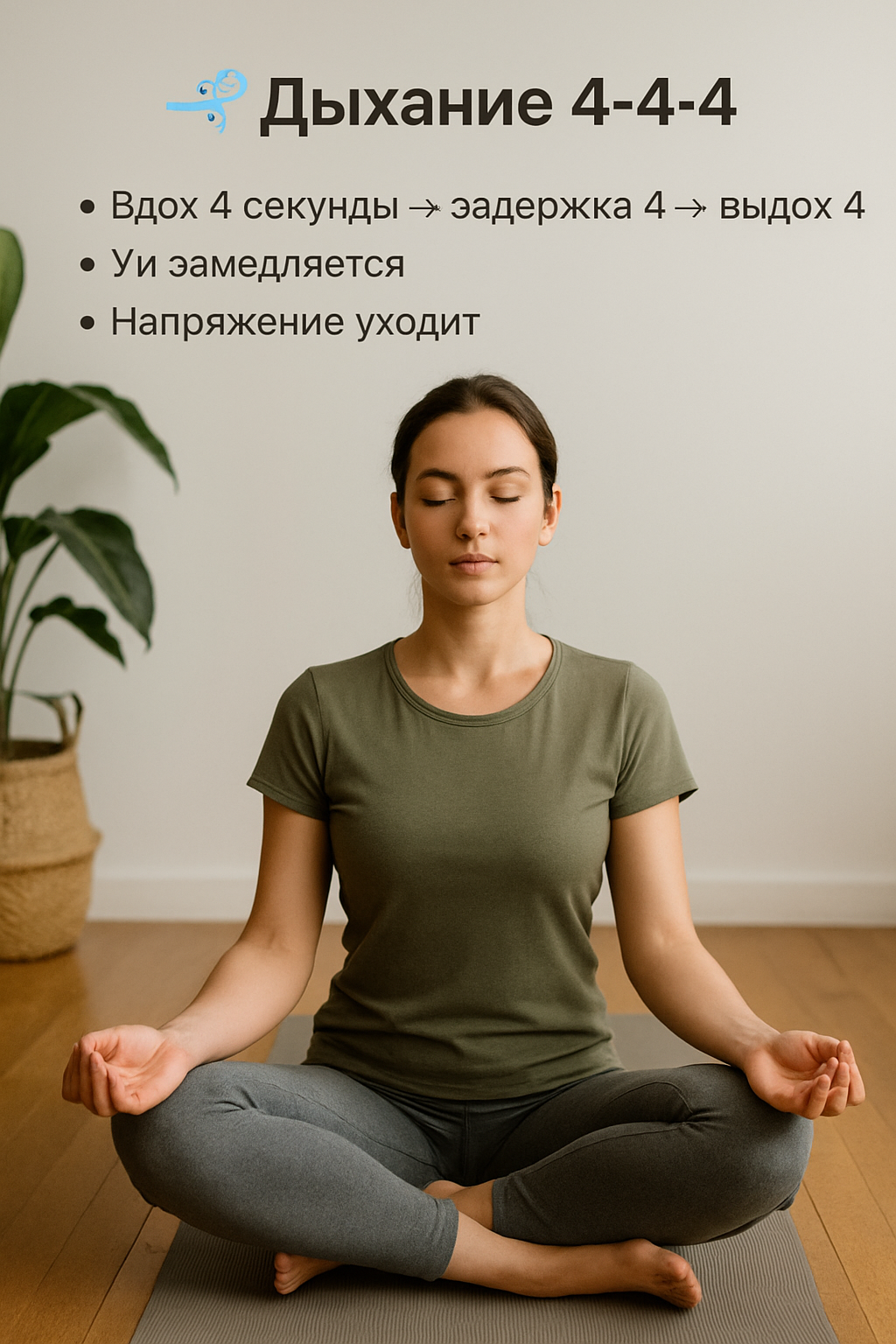 Сядь с прямой спиной, закрой глаза и наблюдай за дыханием.