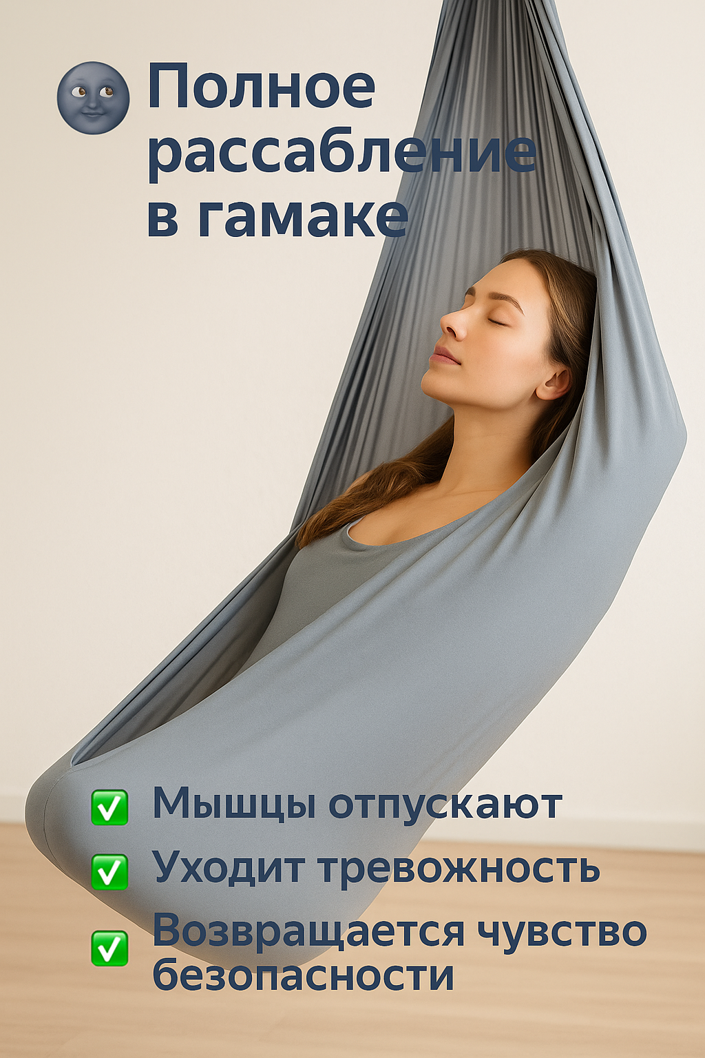 Ляг в гамак для йоги, позволь телу «провалиться».
